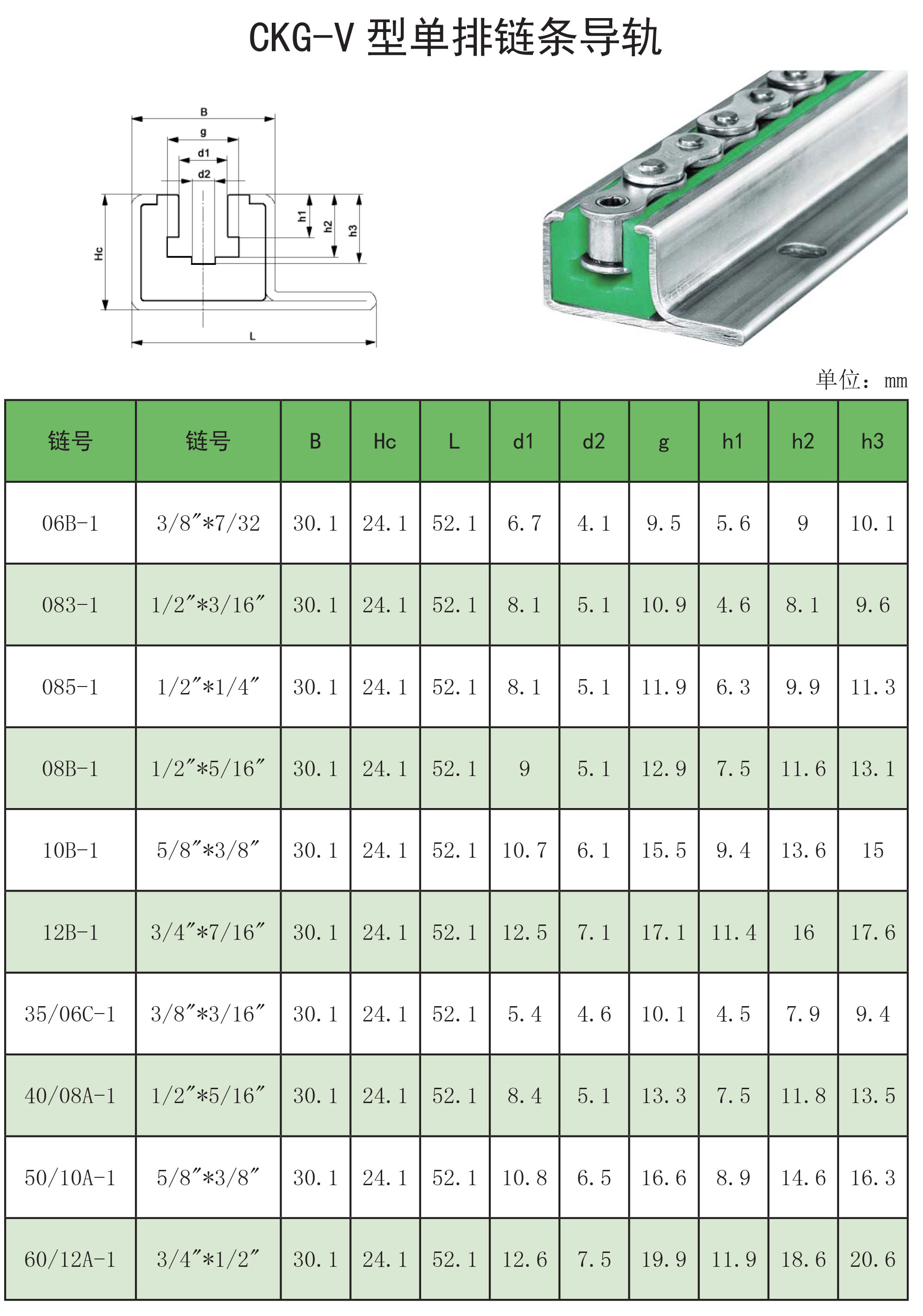 CKG-V 型单排链条导轨