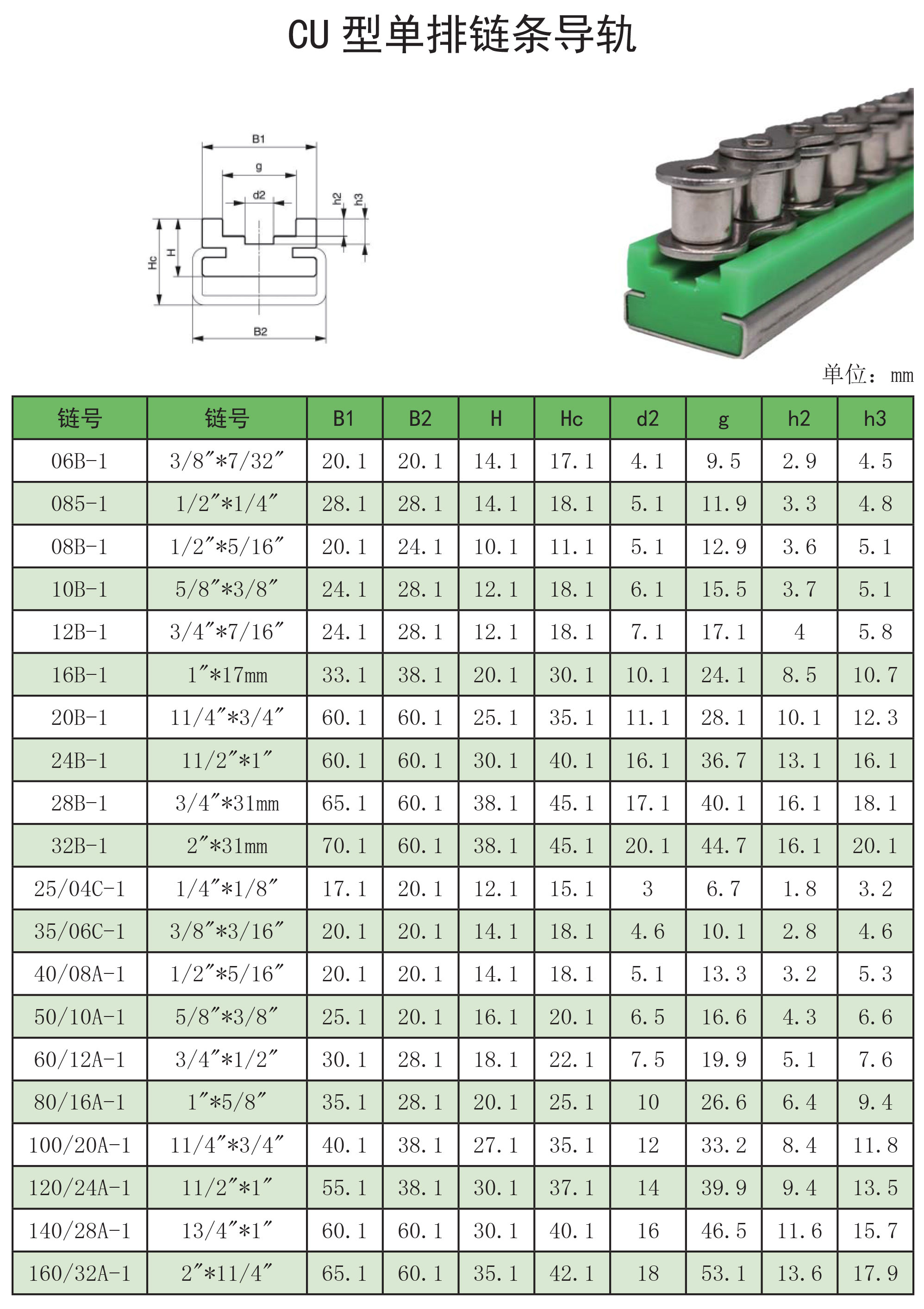 CU 型单排链条导轨